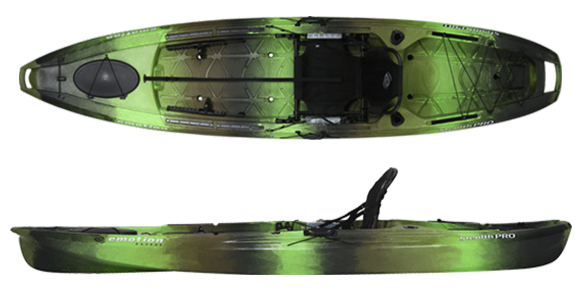 The Emotion Stealth Pro™ Angler Kayak is a versatile, customizeable, innovative,sit-on-top kayak designed for just about every water condition from lakes to slow moving rivers and creeks to beyond the surf. TheV-Tunnel CombinationHull provides outstanding stability, speed, and tracking in an amazing 11' 8" package to get to where the good fishing is. The Stealth Pro™ is loaded with more features than ever before and is equipped with YakAttack's universal GearTrac system to help make customization easier than ever. With more features than we can count, you'll bethe most feared angler on the waterway, prepared for just about any fishing adventure. More Features »